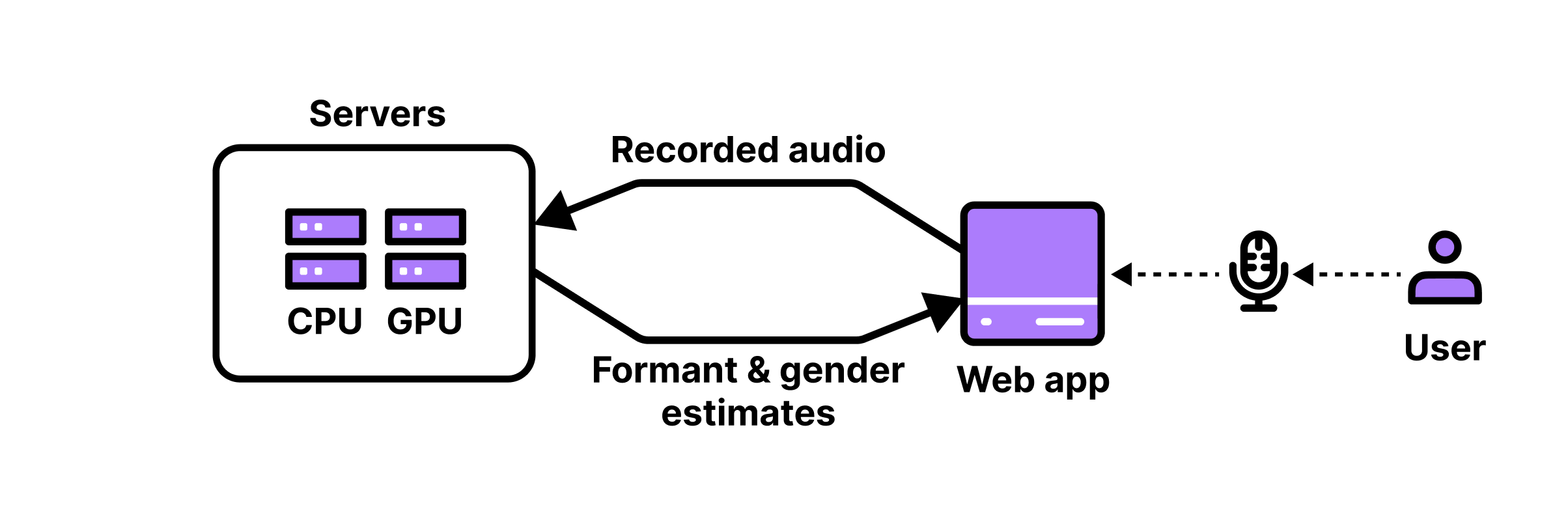 Given the computational complexity of formant analysis, this process is too resource-intensive to be performed on most user devices. Instead, when you record your voice, the audio is securely sent to our backend servers. There, it is processed using the algorithm and the results are sent back to your device.