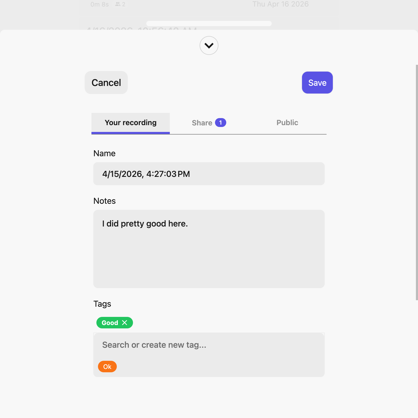 You can now add notes and tags to your recordings. This makes it easier to keep track of what you were working on in each recording, and to find specific recordings later on.